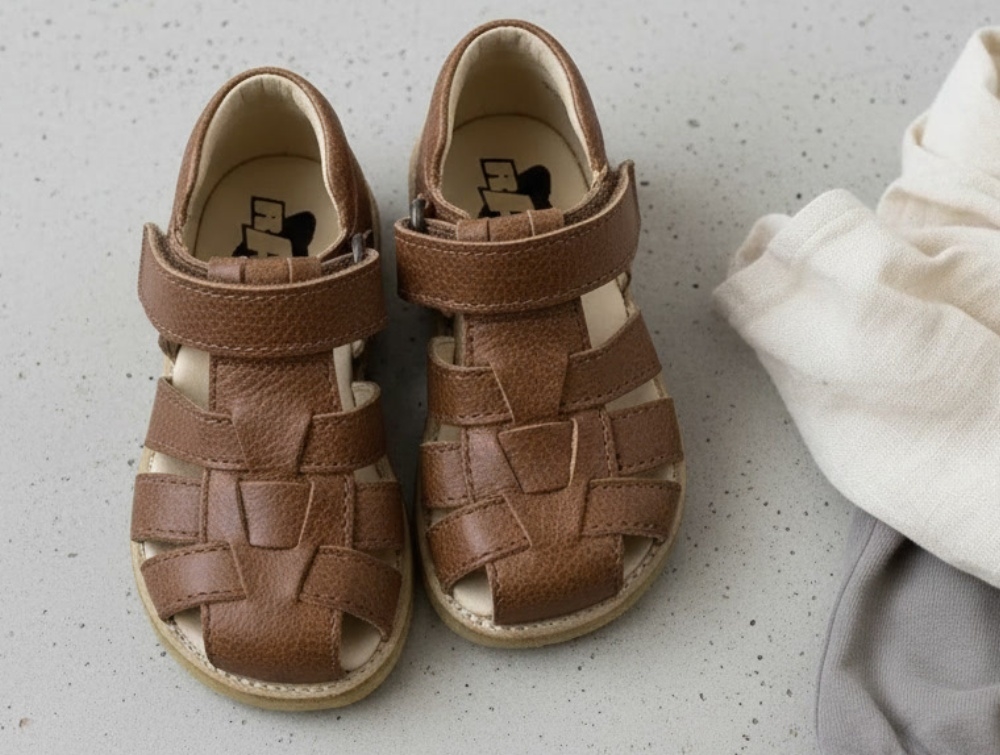 Cognac-colored leather sandal from Arauto RAP.