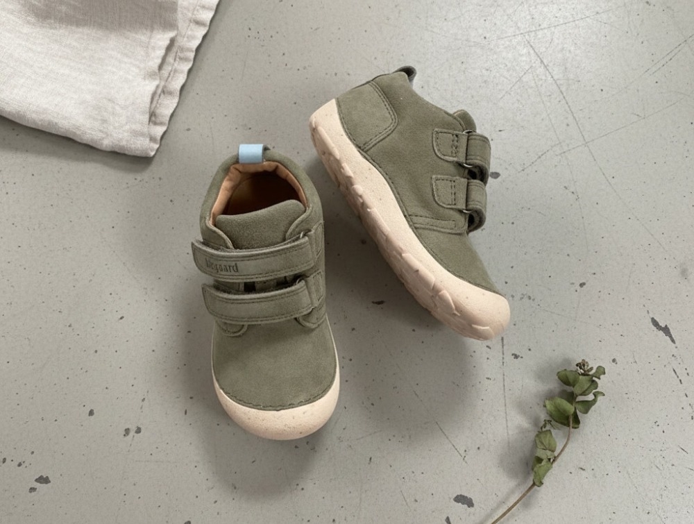 Starter shoe in a warm green shade from Bisgaard – the Carter model is designed for children learning to walk or who have just started walking. The soft suede upper adapts naturally to the foot and provides support without restricting movement.