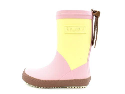 Block color rubber boots in pink and banana yellow from Bisgaard.