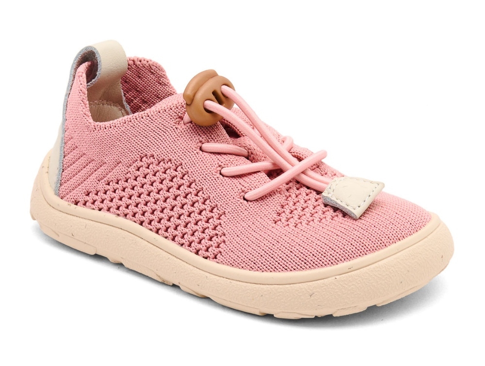 Flexible shoes in a pink shade from Bisgaard – the Jua model is a lightweight barefoot shoe designed for young children. The knitted textile upper creates a soft, sock-like fit around the foot while keeping the shoe breathable and comfortable.