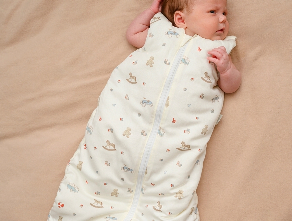 The sleeping bag features a zip closure and a soft jersey lining inside. It is ideal for babies who tend to kick off their blankets and has been tested according to relevant safety standards for children’s sleeping bags.
