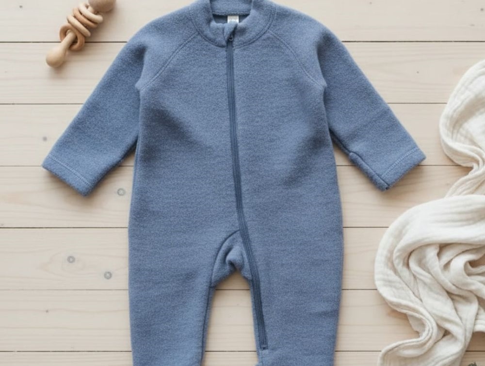 Onesie in the color flint stone, made from 100% wool by CeLaVi.