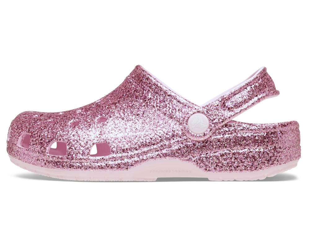 Crocs Classic clog in pink with chunky glitter and adjustable heel strap