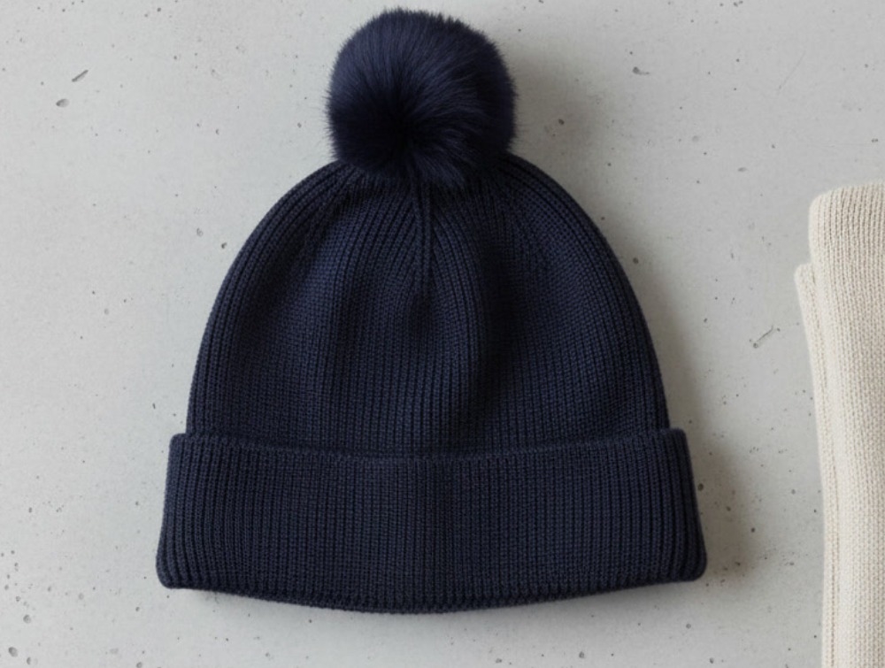 Faux fur pom-pom (not detachable).