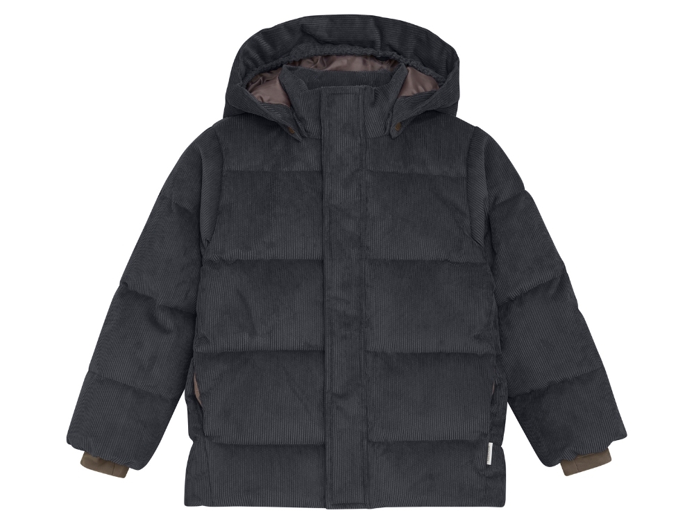 En Fant winter jacket in ebony with corduroy and quilted channel stitching