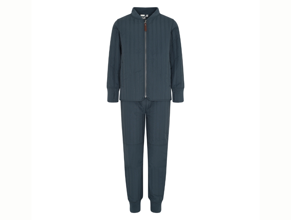 The set includes a quilted jacket and matching trousers with light padding and a classic look. Perfect for the in-between seasons or cooler days.