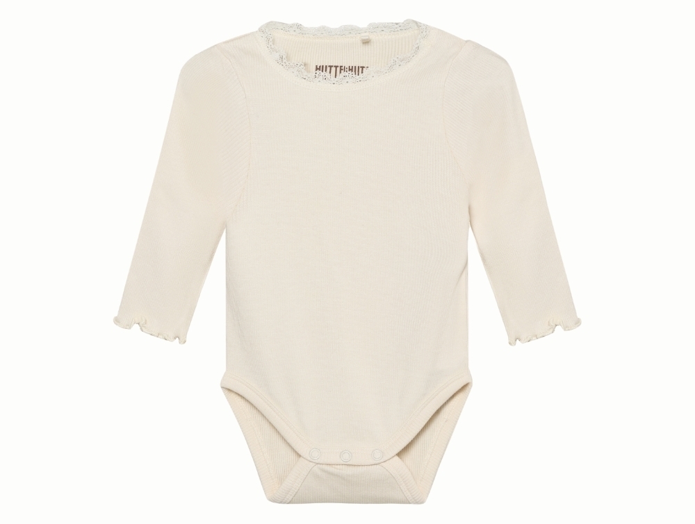 Body in off-white shade (antique white) from Huttelihut with lace trim around the neckline and delicate babylock edges at the sleeves.