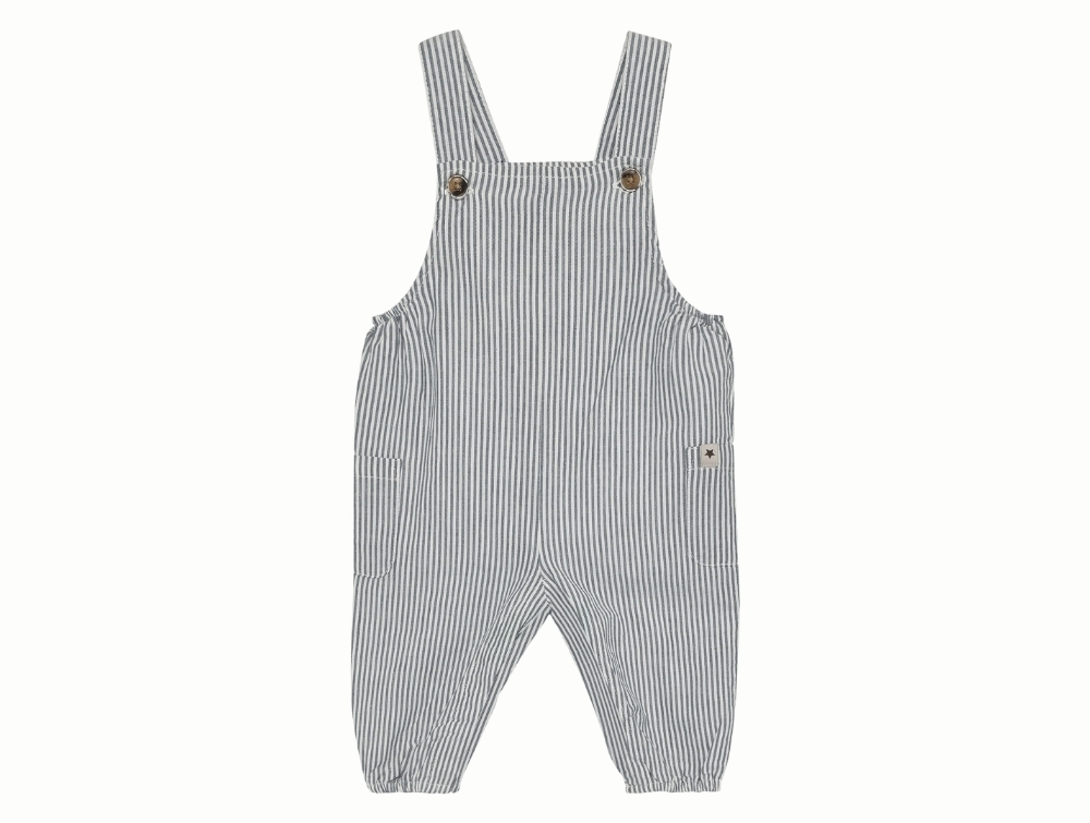 Striped overalls in off-white and dark navy (bering sea) from Huttelihut.