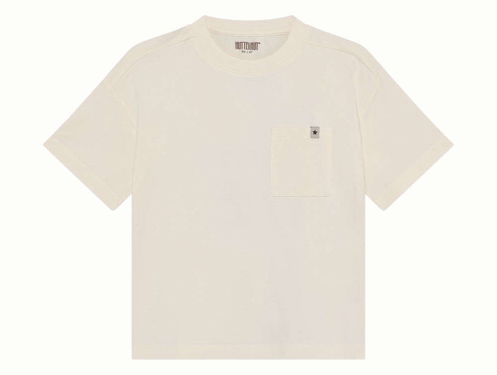 Short-sleeved t-shirt in off-white shade (antique white) from Huttelihut featuring a chest pocket and back print.