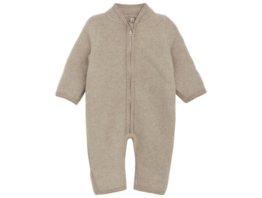 Huttelihut pramsuit camel melange in wool fleece with fold-over at sleeves and legs