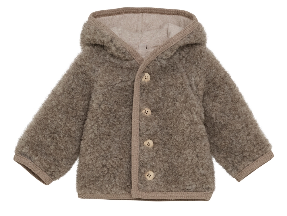 The jacket is made of warm merino wool and lined with soft cotton. Perfect as a transitional jacket for little ones. Closes with buttons at the front and has a regular fit.