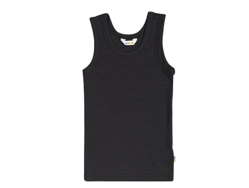 Joha’s wool/silk tank tops are excellent base layers for children all year round. This black unisex version is soft, thin, and temperature-regulating – completely free from “wool scratchiness”. It works perfectly under shirts, blouses, or dresses and can also be worn on its own during warm days.