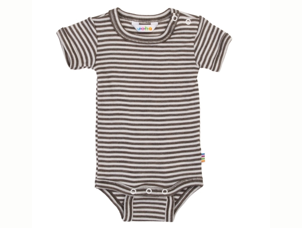 Striped short-sleeved body in brown and off-white tones from Joha with narrow, close stripes and a fine rib texture.
