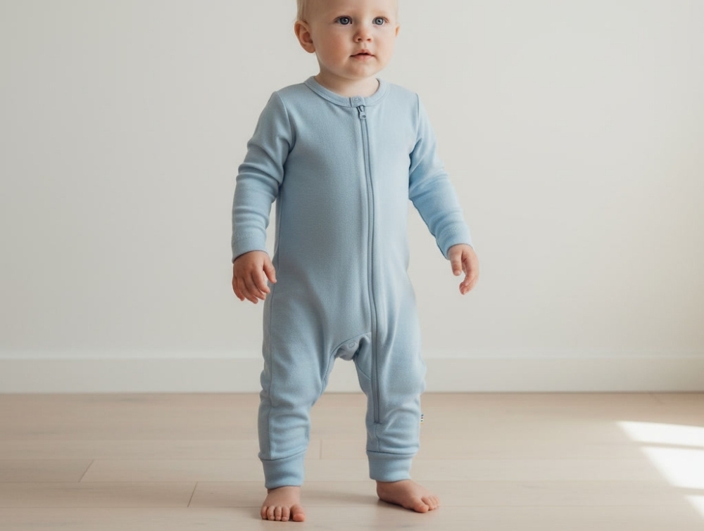 Joha merino wool jumpsuit in blue with 2-in-1 feet