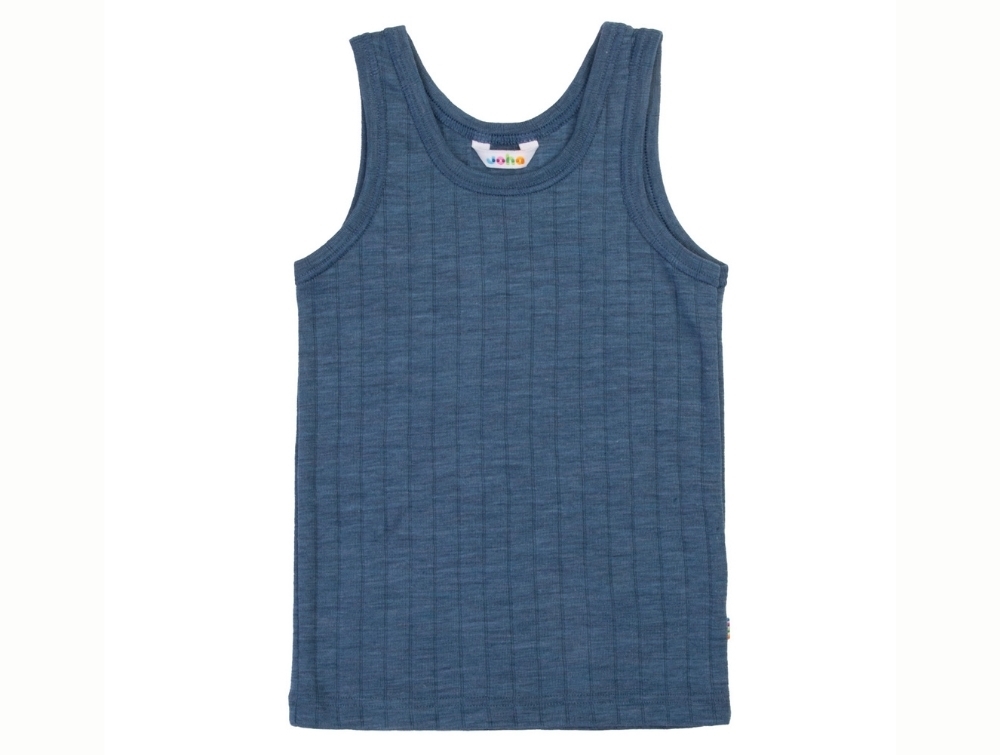 Undershirt in a blue melange tone from Joha with a calm, solid-colour look and clear vertical rib texture.