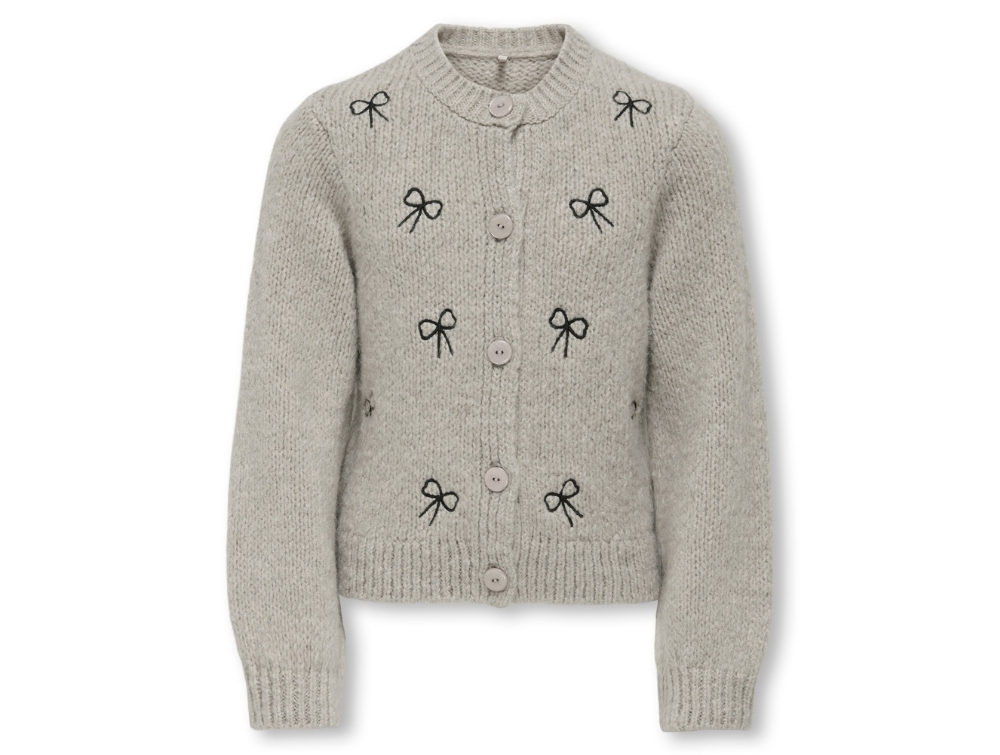 Cardigan in light grey shade (pumice stone) from KIDS ONLY featuring small embroidered bows on the front.