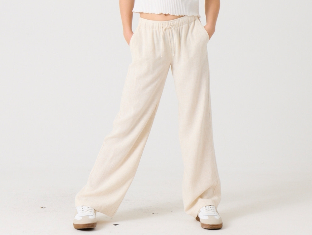 The viscose and linen blend creates a light and airy fabric that feels comfortable against the skin. The material has a natural texture, making the trousers suitable for warmer days.