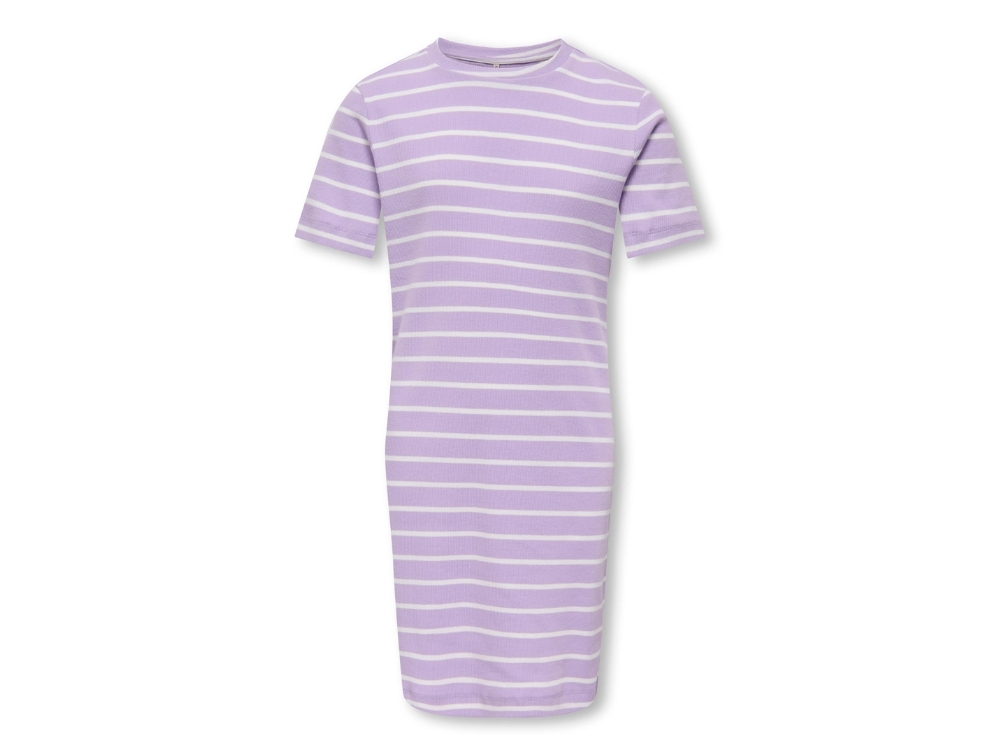 Dress in purple (lilac breeze) from Kids ONLY with white (cloud dancer) stripes and short sleeves.