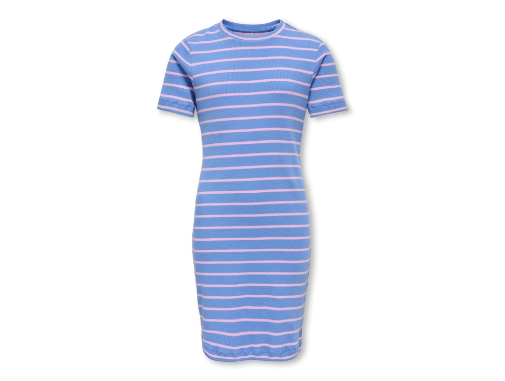 Dress in blue (ultramarine) from Kids ONLY with pink (sweet lilac) stripes and short sleeves.