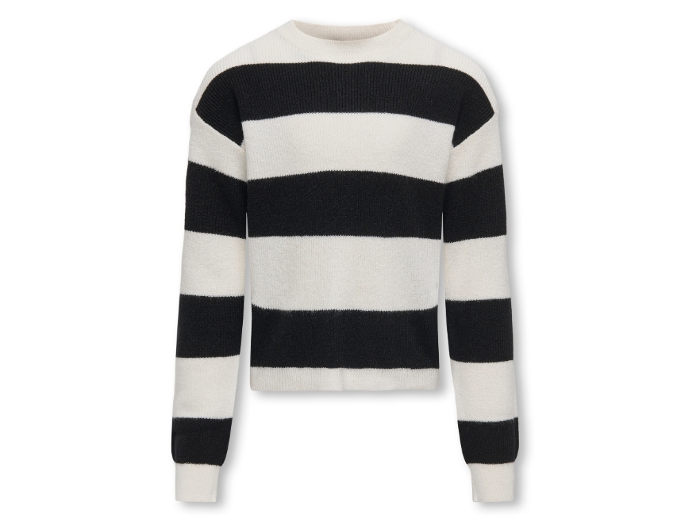 Knit pullover in white shade (cloud dancer) with wide black stripes from Kids ONLY.
