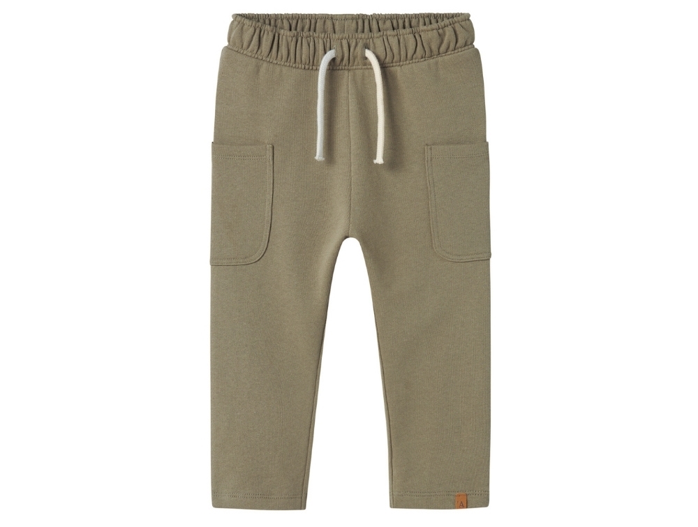 Trousers in a muted green shade from Lil' Atelier made from soft jersey fabric. Designed with an elastic waistband, fixed drawstring and adjustable inner elastic for a perfect fit. The two large front pockets add a practical and casual touch.
