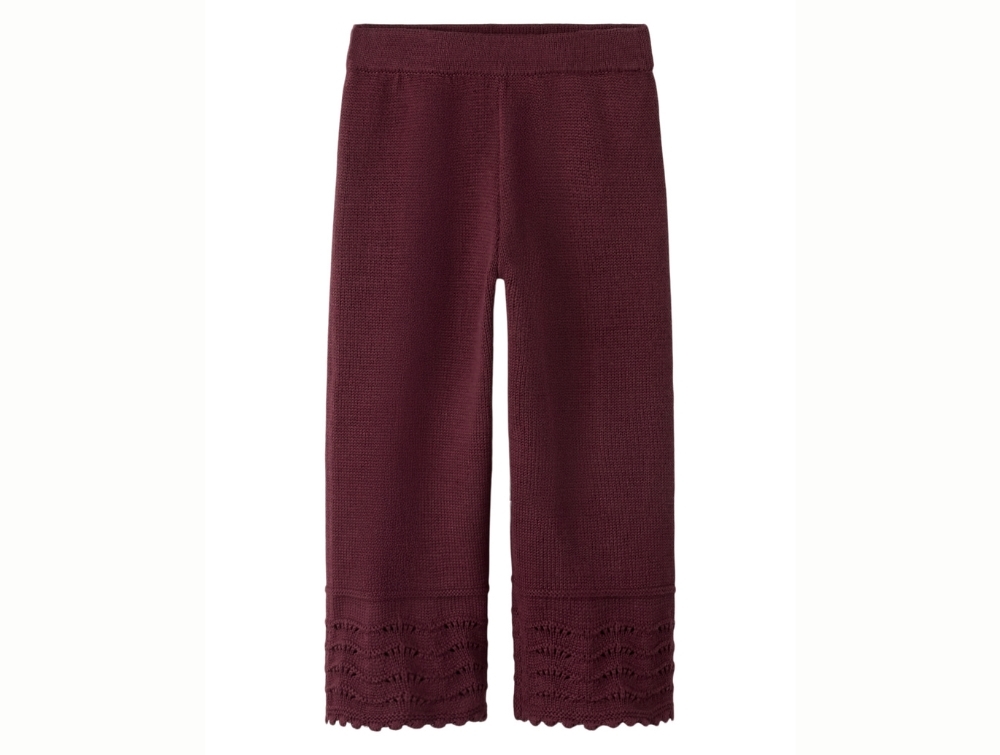 Lil' Atelier knitted trousers in bordeaux with scallop edge and adjustable waist