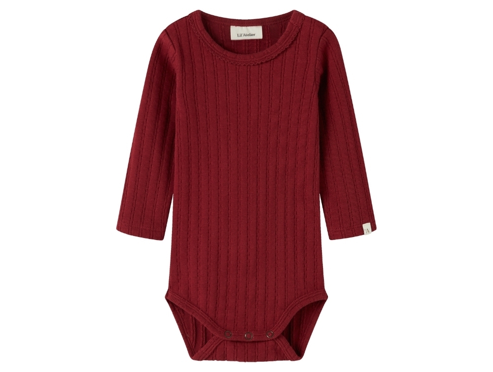 Long sleeve body in deep red shade (red dahlia) from Lil' Atelier.