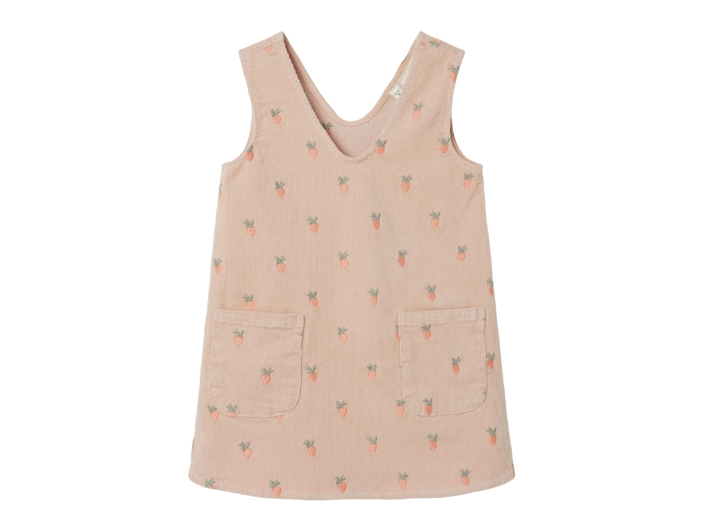The dress is made of velvet with a soft feel and a ribbed surface. It features a Spencer design and two small front pockets for little treasures.