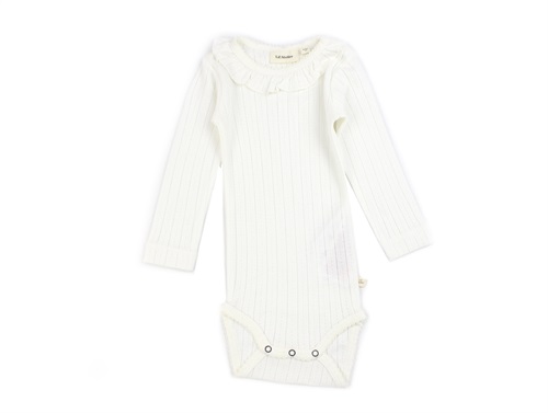 Bodysuit in the color coconut milk with ruffles and pointelle pattern from Lil' Atelier.