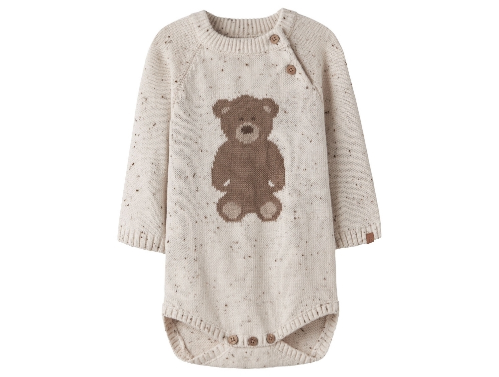 Knitted body in off-white shade (turtledove) with a teddy bear motif on the front from Lil' Atelier.
