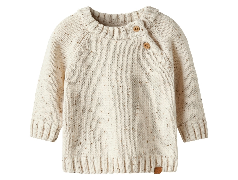 Made from soft organic cotton with speckled details in the knit, giving it a natural and timeless look. A practical everyday style for little ones.