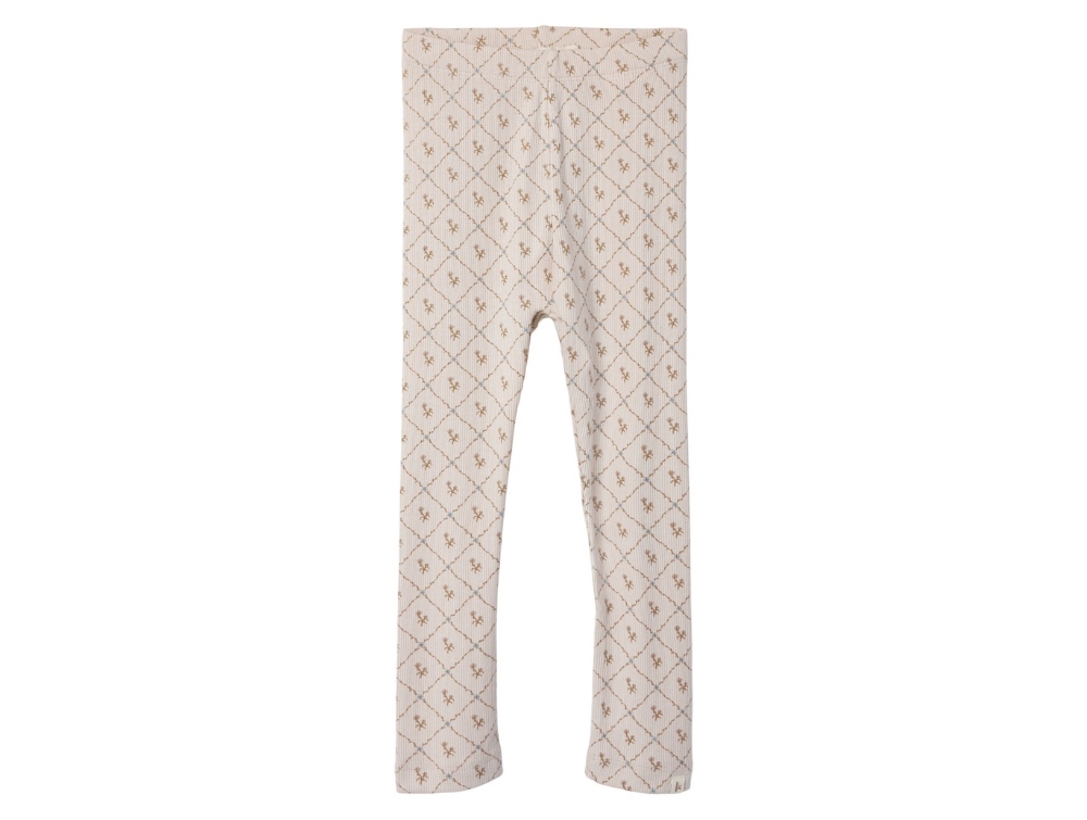 Ribbed leggings in light grey tone from Lil' Atelier featuring a vintage-inspired floral print. Soft and stretchy jersey leggings perfect for everyday wear.