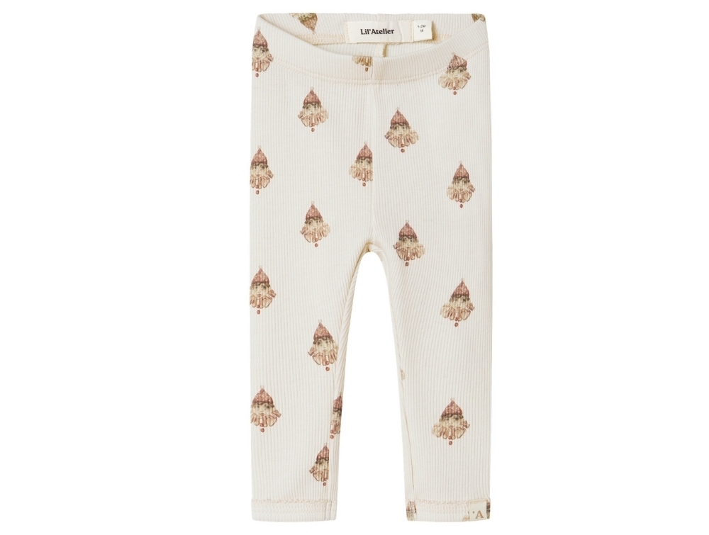 Ribbed leggings in beige with clown print from Lil' Atelier. These soft leggings feature an elasticated waist and a slim fit that provides comfort and freedom of movement.