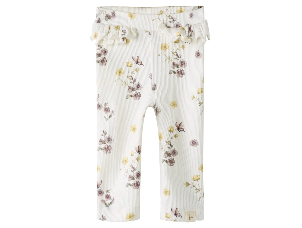 Leggings in an off-white shade from Lil' Atelier with floral print and frill detail (coconut milk).
