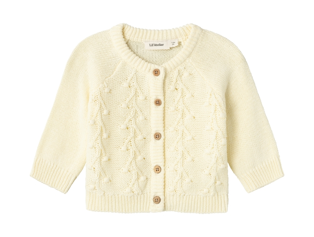 Knit cardigan in the color lemon icing from Lil' Atelier.