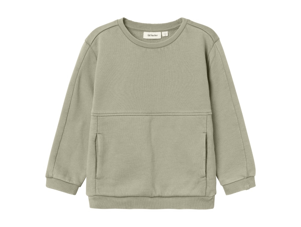 Loose sweatshirt in the color moss gray with a large front pocket from Lil' Atelier.