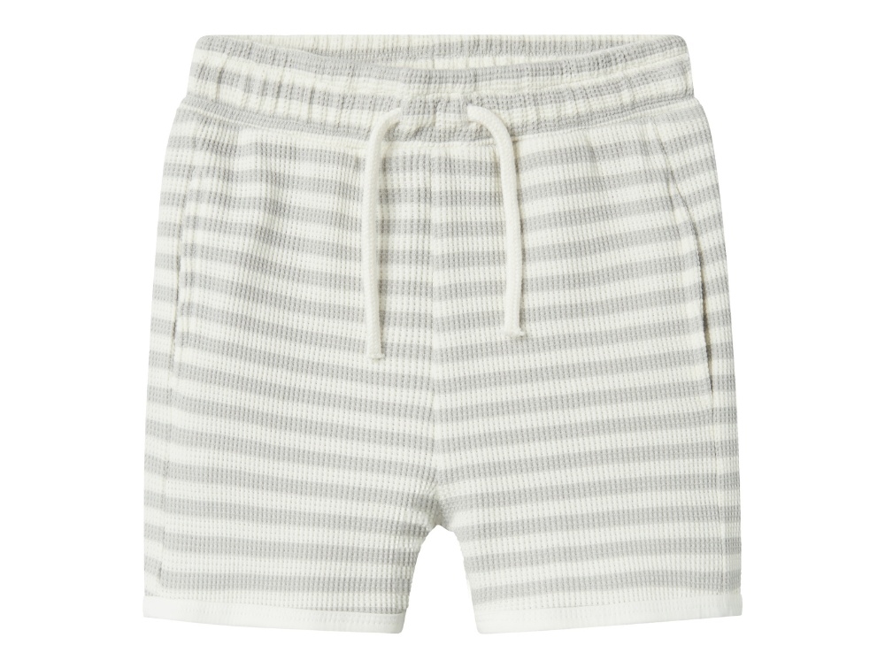 Striped shorts in the colors oyster mushroom and coconut milk from Lil' Atelier.
