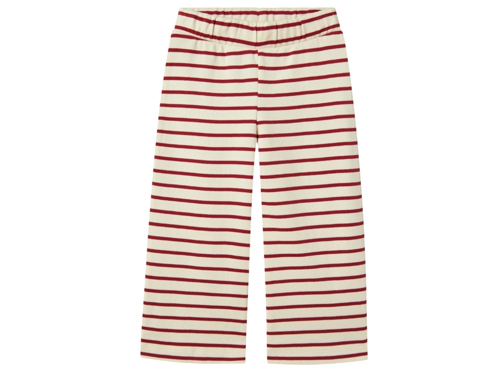 Pants in off-white shade from Lil' Atelier featuring red stripes. Soft jersey trousers with elastic waist and wide legs for a relaxed and comfortable fit.