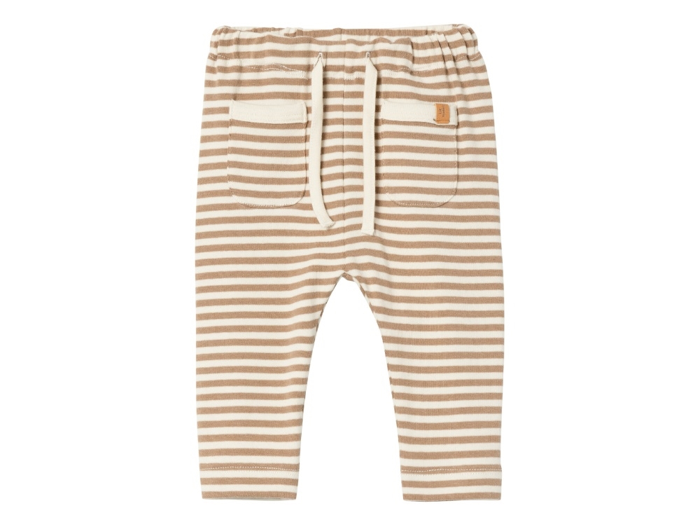 Pants in the color tigers eye with stripes from Lil' Atelier.