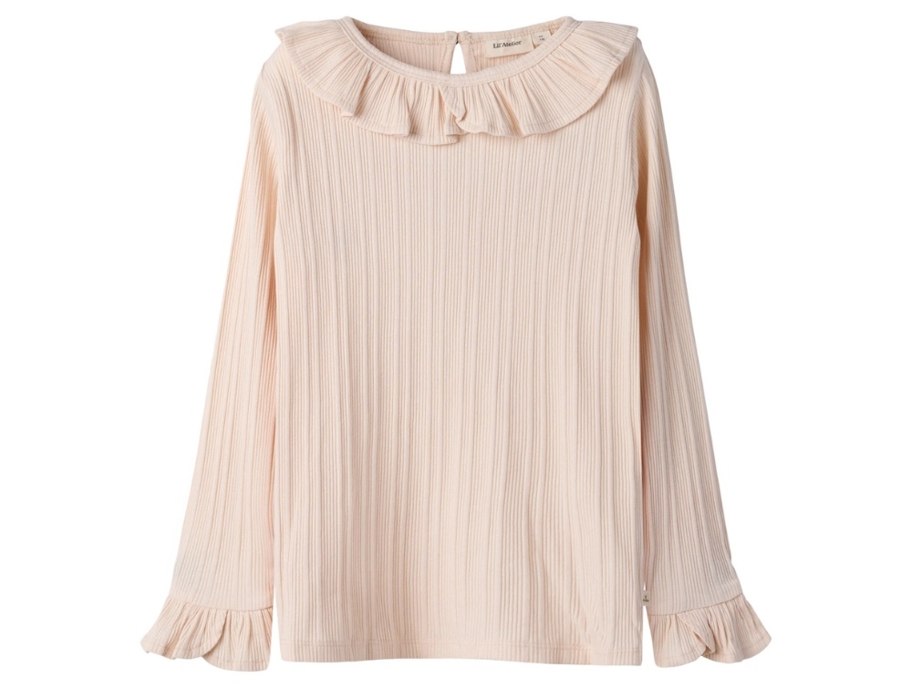 Blouse in a soft pink shade from Lil' Atelier with delicate frill details (novelle peach).