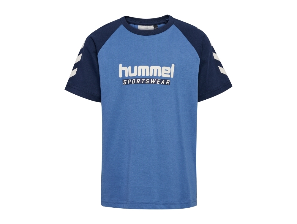The style features a round neck, short raglan sleeves and a regular fit. The classic hummel chevrons on the sleeves are part of the brand’s recognisable design.