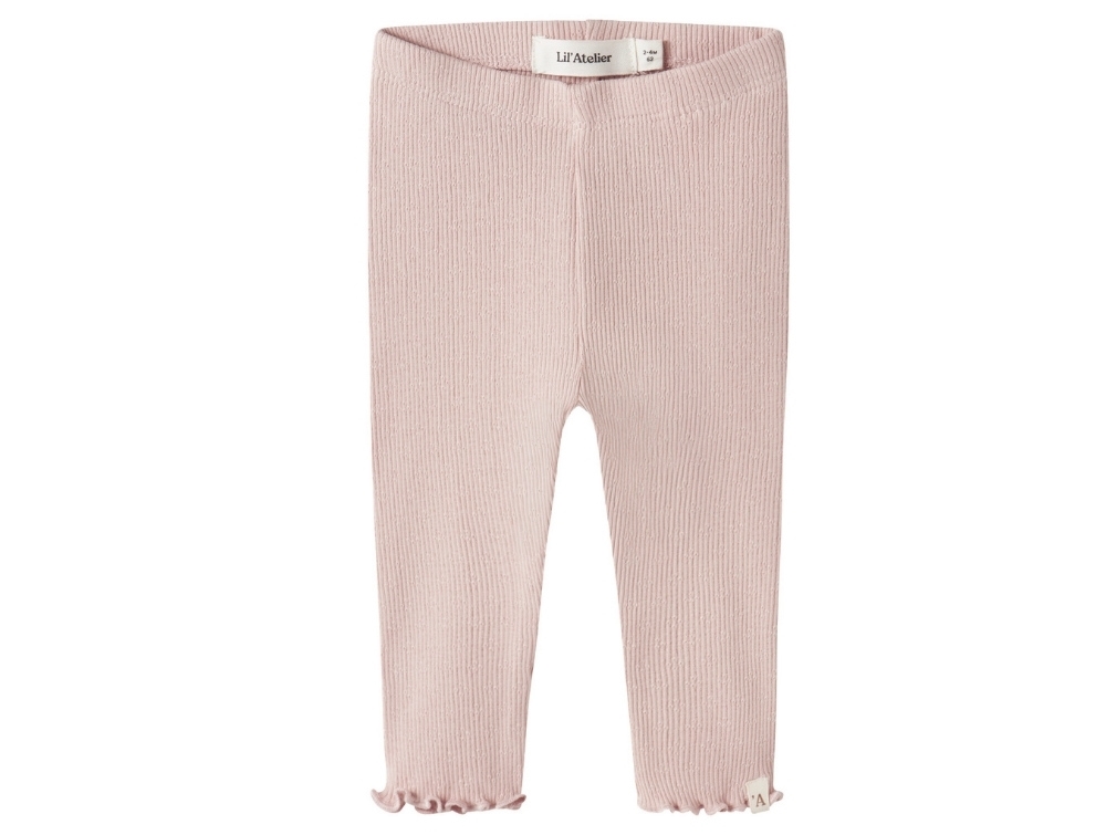 Ribbed leggings in a soft pink shade from Lil' Atelier. These comfortable leggings feature an elasticated waist and a delicate wavy edge at the ankles for a cute, feminine touch.