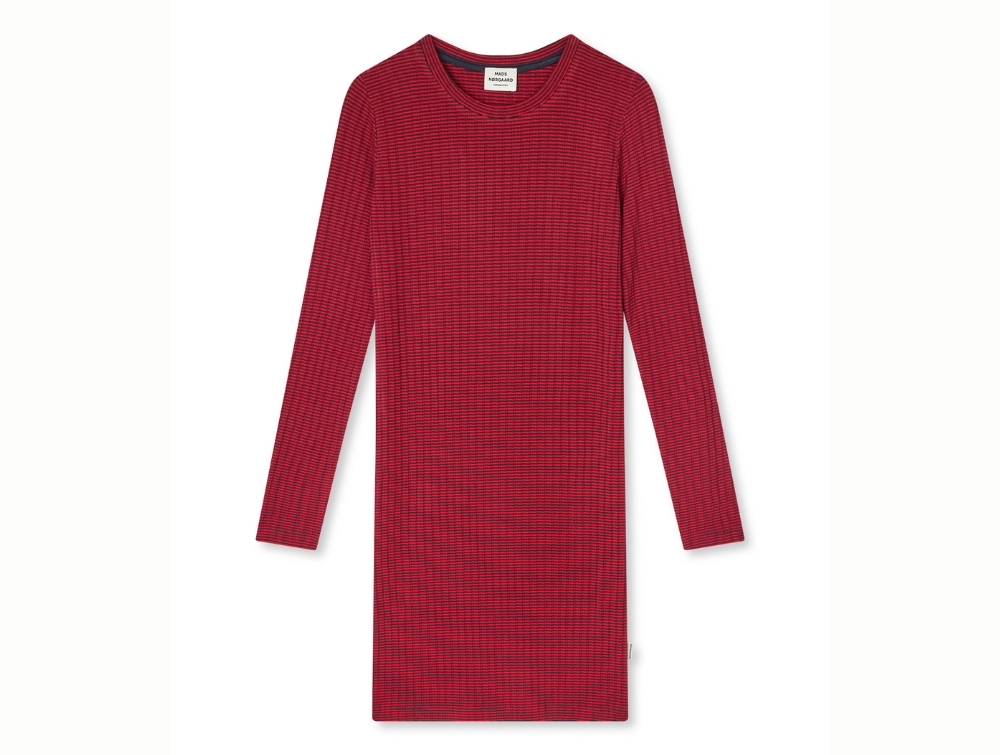 Mads Nørgaard Dubina dress in red striped rib with long sleeves