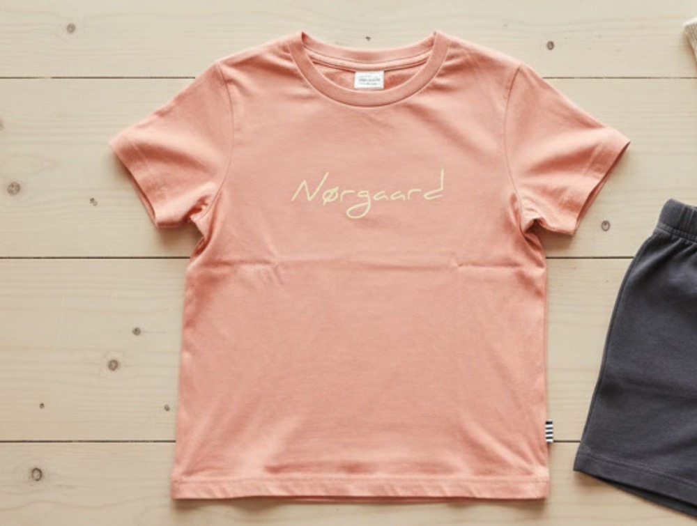 A t-shirt with a logo in the color shell pink from Mads Nørgaard.