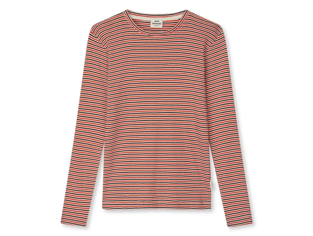 It features a round neck, long sleeves and a close yet stretchy fit for great comfort. The signature Mads Nørgaard stripes make it a timeless wardrobe essential for everyday wear and layering.