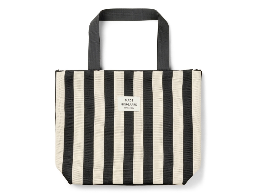 Mads Nørgaard Tote Bag in black with stripes and logo