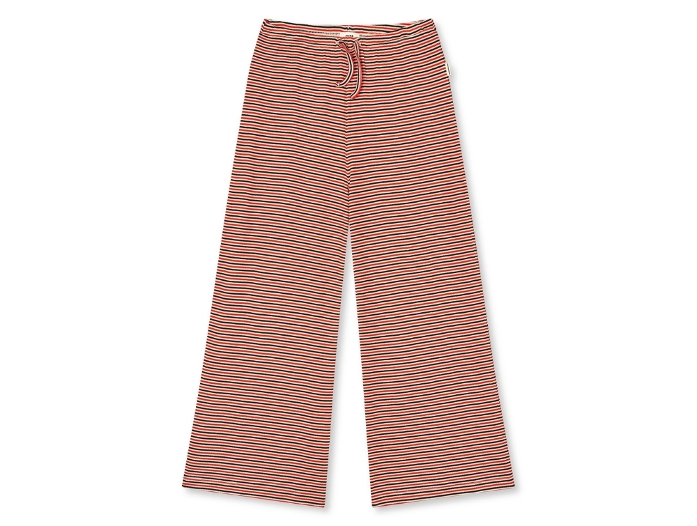 Verona pants in red and white (fiery red/vanilla ice) striped rib from Mads Nørgaard.