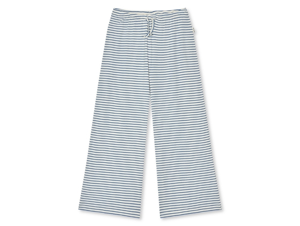 Verona pants in white and blue (vanilla ice/bright cobalt) stribed rib from Mads Nørgaard.