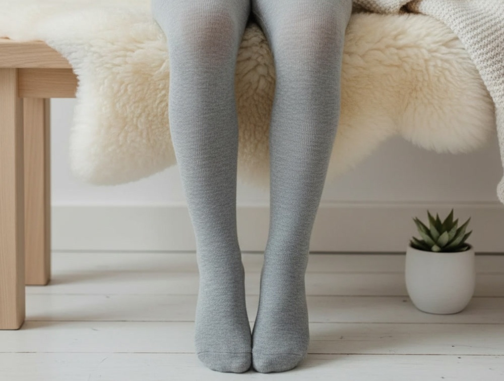 Melton bamboo tights in light grey with wide waistband