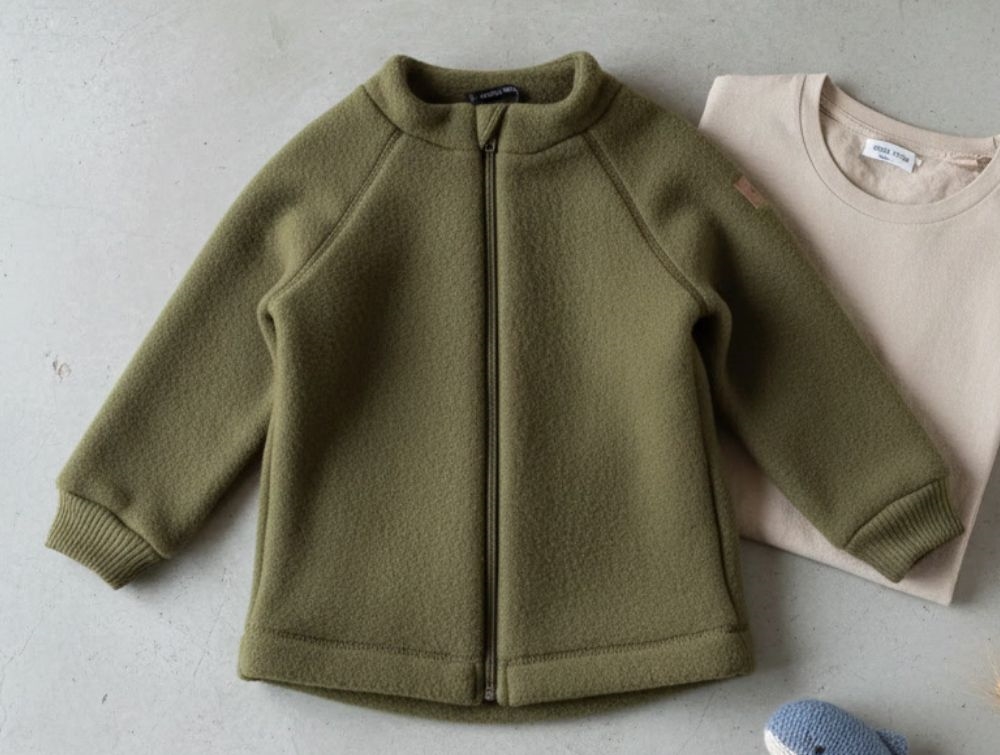 Jacket/cardigan in merino wool in the color beech from Mikk-line.